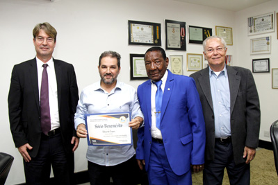 O título de Sócio Benemérito com o qual a Associação Mútua agraciou o senador Eduardo Lopes, pelo apoio que vem dispensando à Fundação REFER para que receba as dívidas da União Federal e da CBTU foi entregue ontem, 28 de agosto, na sede do Partido Republicano Brasileiro (PRB), no bairro de Benfica, Rio de janeiro.