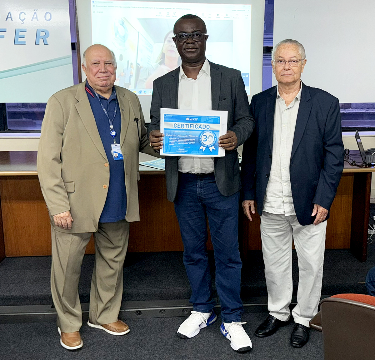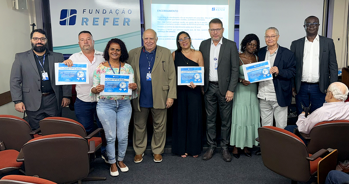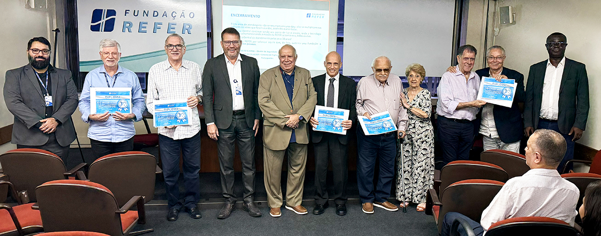 Durante a celebração, foram entregues diplomas e certificados de reconhecimento aos empregados da Central de Relacionamento, em agradecimento pela dedicação ao atendimento dos participantes. Também foi homenageada Sandra Lordsleem da Silva, Analista Técnico que está na representação da REFER em Recife, e acompanhou a cerimônia por videoconferência e teve seu certificado recebido por Aloysio Sérgio Fagundes de Azevedo, a representando na ocasião. O gerente Edson de Almeida Oliveira também recebeu um certificado em reconhecimento à sua contribuição e atuação.