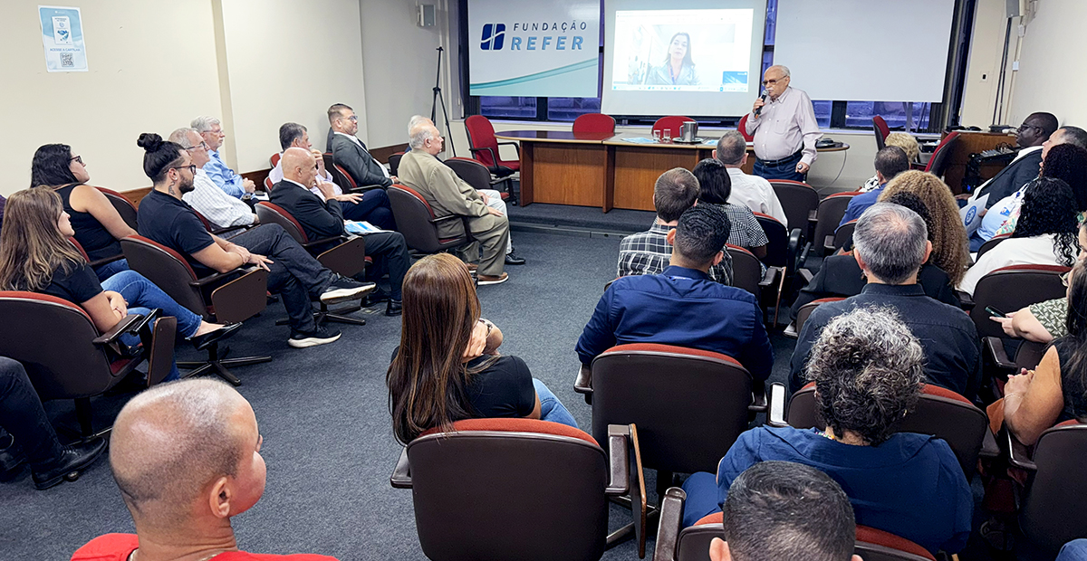 O Diretor de Seguridade, Almir Ferreira Gaspar, e o gerente de Captação e Atendimento de Participantes, Edson de Almeida Oliveira, deram início às apresentações com uma palestra que trouxe um breve histórico sobre a criação da Central de Relacionamento com o Participante, relembrando os primeiros passos da estrutura de atendimento que, ao longo das últimas três décadas, se consolidou como um dos principais canais de proximidade entre a REFER e seus participantes.