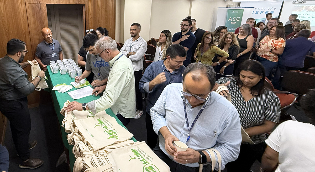 Os empregados também receberam brindes sustentáveis, simbolizando a importância de pequenas ações cotidianas na construção de um futuro mais equilibrado e responsável.