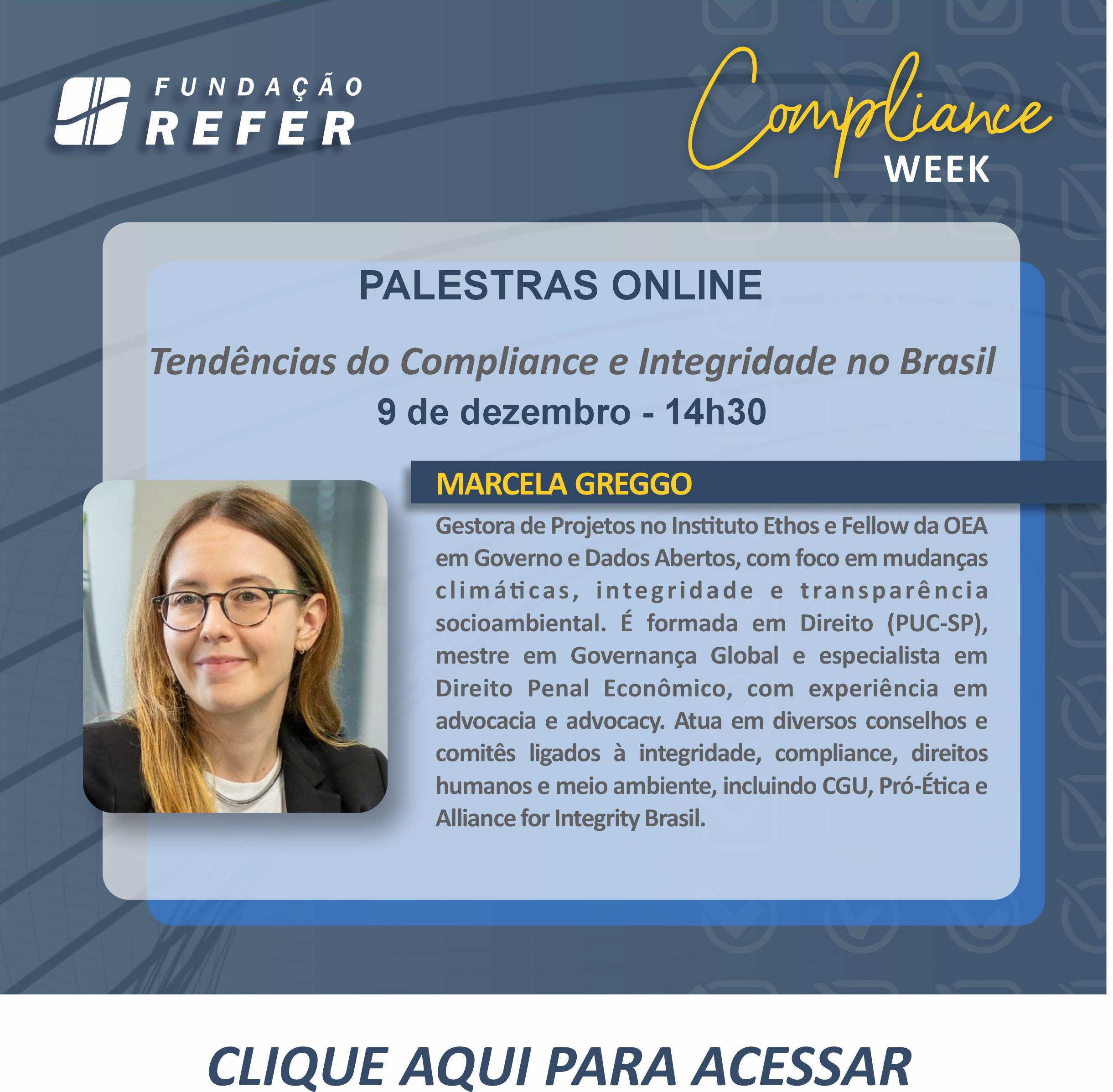 O Compliance Week reforça o comprometimento da REFER com a promoção de um ambiente íntegro, transparente e alinhado às melhores práticas de mercado. Seguimos fortalecendo nossa cultura ética e contribuindo para o desenvolvimento sustentável da governança no Brasil.